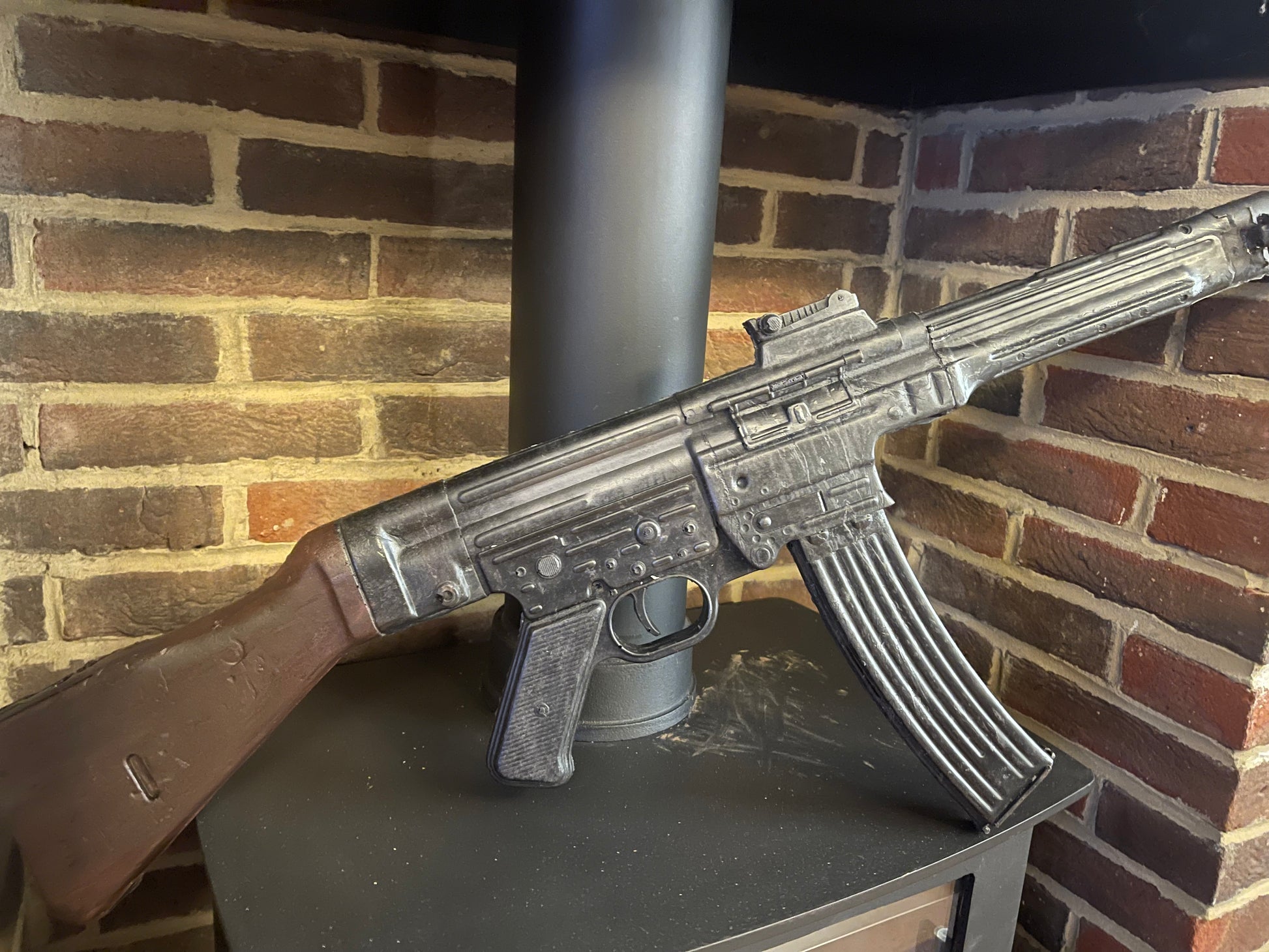 Rubber cast of an MP44 ( STG44) moulded of an original blending historical accuracy with modern safety. This World War II firearm reproduction captures the essence of the original with precision detailing, and secure rubber construction for safe use in action sequences. Ideal for film productions, reenactments, and collectors, this prop offers versatile applications and durable performance. Elevate your production with authenticity and safety. For hiring rates please get in touch.